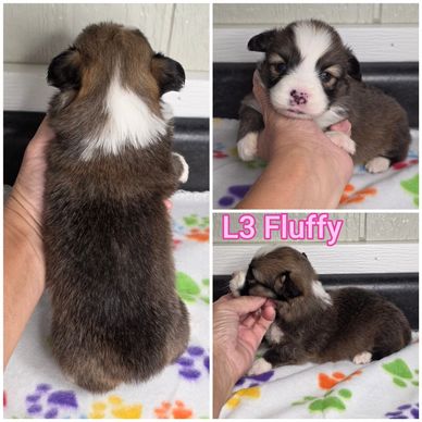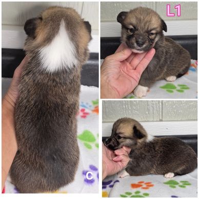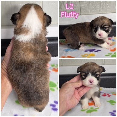 Her Mom, Nellie is a very sweet Akc PWC Fluffy Tri. Nellie came to ArmnalegRanch from Missouri. She weighs 28 lbs.